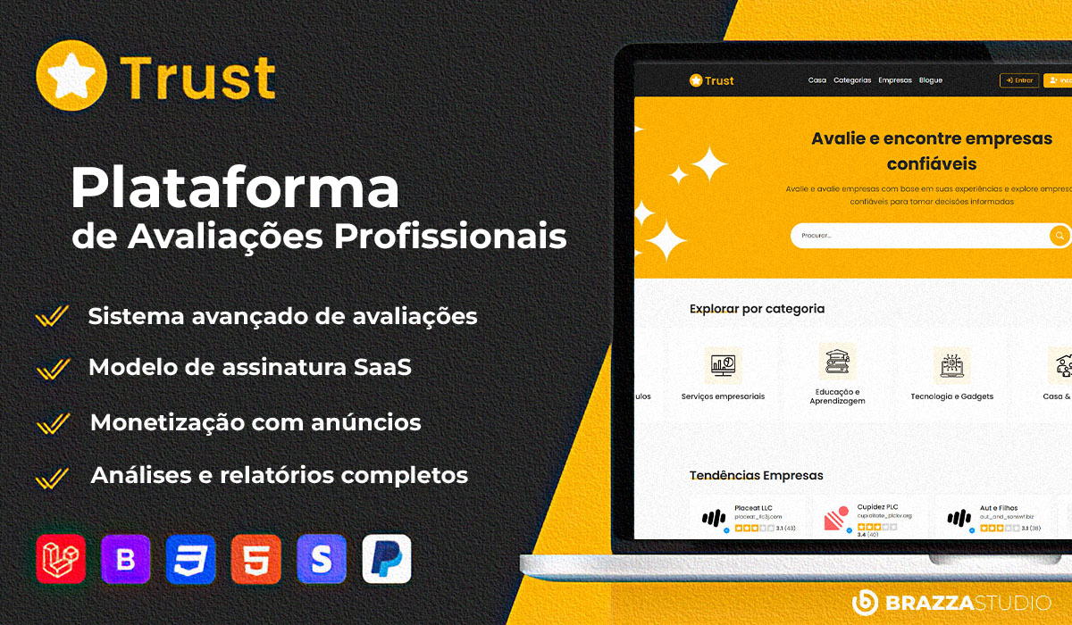 Trust é uma solução digital moderna e completa para quem deseja criar um site de avaliação de empresas, diretórios locais, marketplaces de serviços ou até uma plataforma SaaS com planos pagos. Ideal para startups, agências, desenvolvedores ou empreendedores que buscam uma plataforma pronta, robusta e escalável.